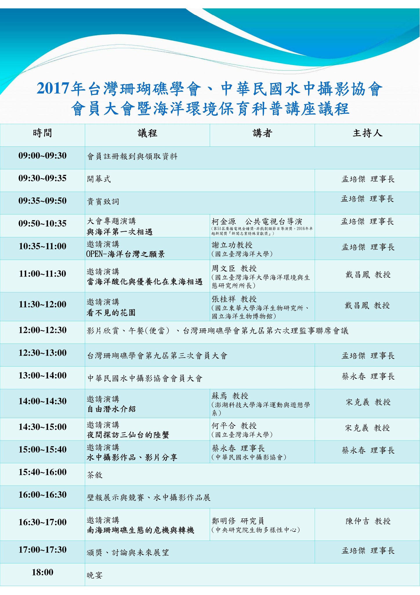 | 主辦單位 | 台灣珊瑚礁學會 |