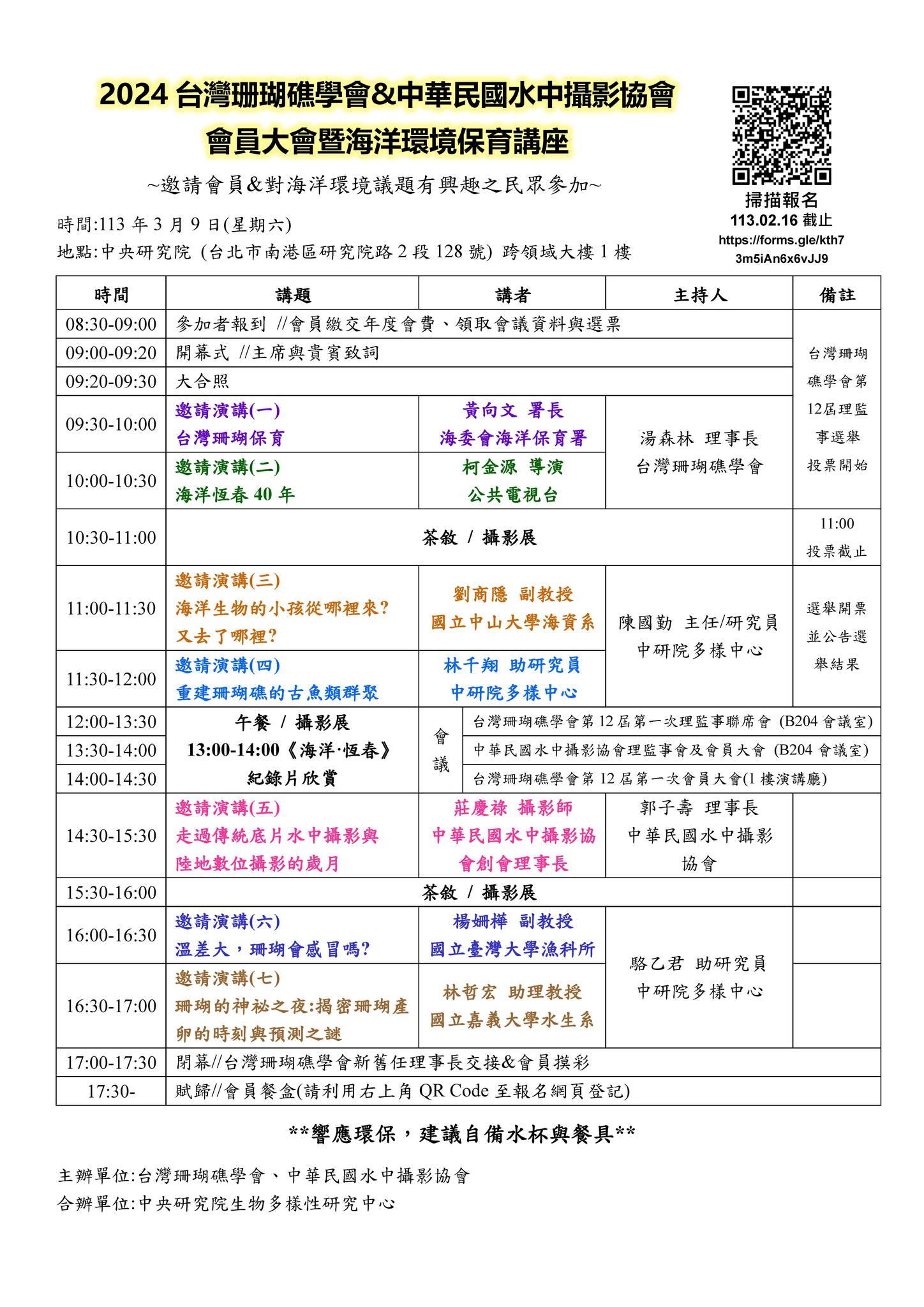 2024臺灣珊瑚礁學會&水中攝影協會會員大會與環境講座
